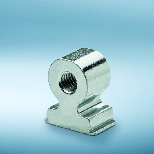 The PEM® R’ANGLE angle brackets are available as type RAS (sintered steel) for M3 and M4 bolts and for sheet hardness up to HRB 60; as type RAA (aluminium) for self-tapping screws they are for use in materials with hardness of up to HRB 45.