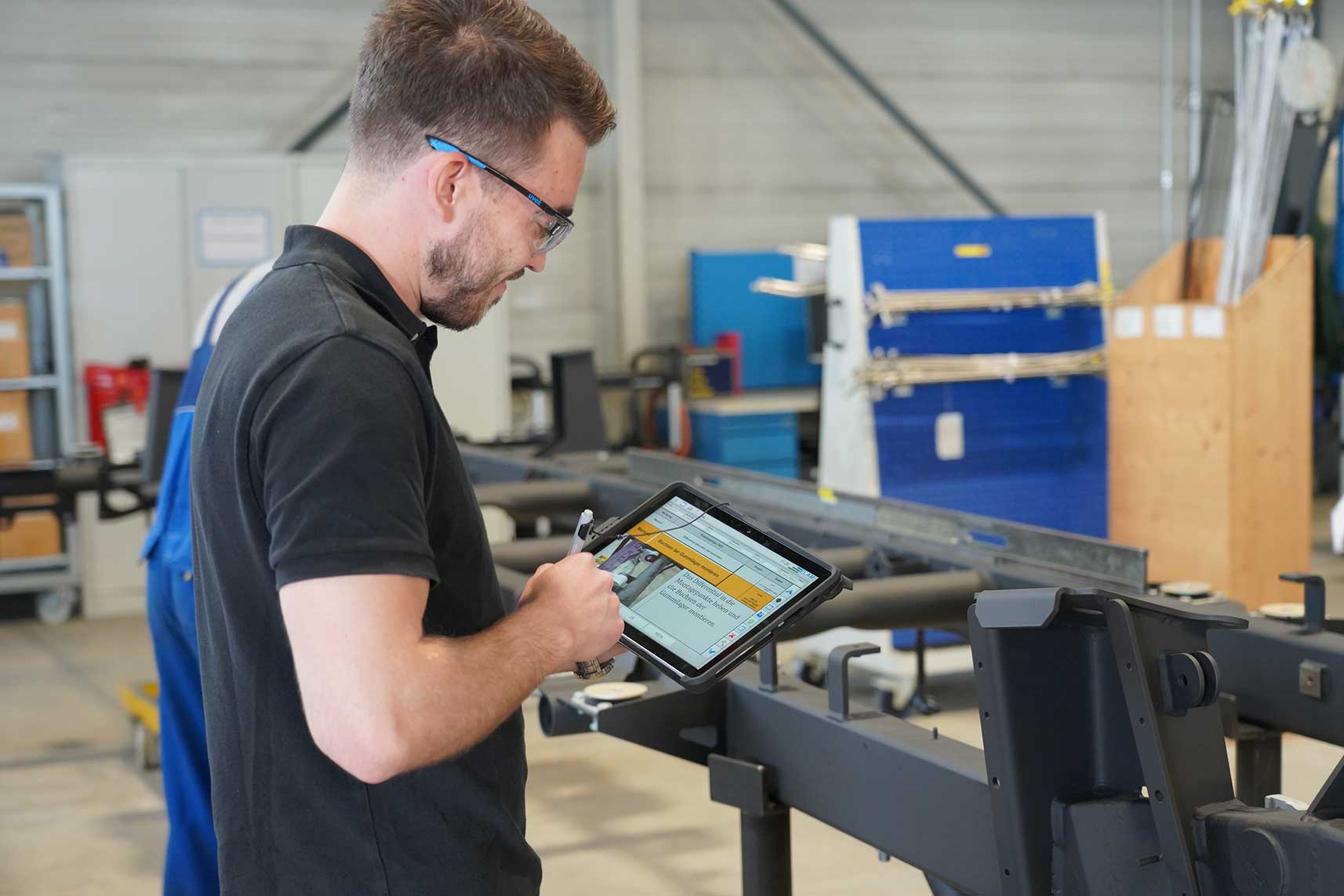 Keď výrobca prejde na digitalizované pracovné dokumenty, pracovné pokyny sa automaticky aktualizujú zo systému ERP, pričom sú k dispozícii auditové záznamy pre revízne zmeny. Pracovné pokyny a príslušná dokumentácia sa každému pracovníkovi zobrazujú na tablete a výrobné zariadenia na montážnej linke ako inteligentné nástroje a testovacie prístroje sú pripojené k systému, čím sa zaručuje sledovateľnosť kvality.